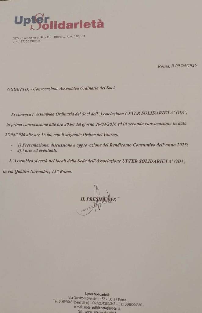 Upter Solidarietà Aprile 2026